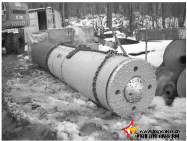 BM500 在直徑3.2 米的圓形出發坑中頂進406mm 的臨時套管。在空心螺旋鉆桿的幫助下,利用激光導向系統通過光路進行導航,鉆進過程中幾乎沒有偏離管道中心線和坡度。在完成臨時套管安裝后,臨時套管在陶土管的作用下被推出。